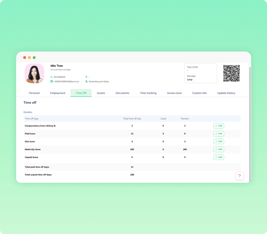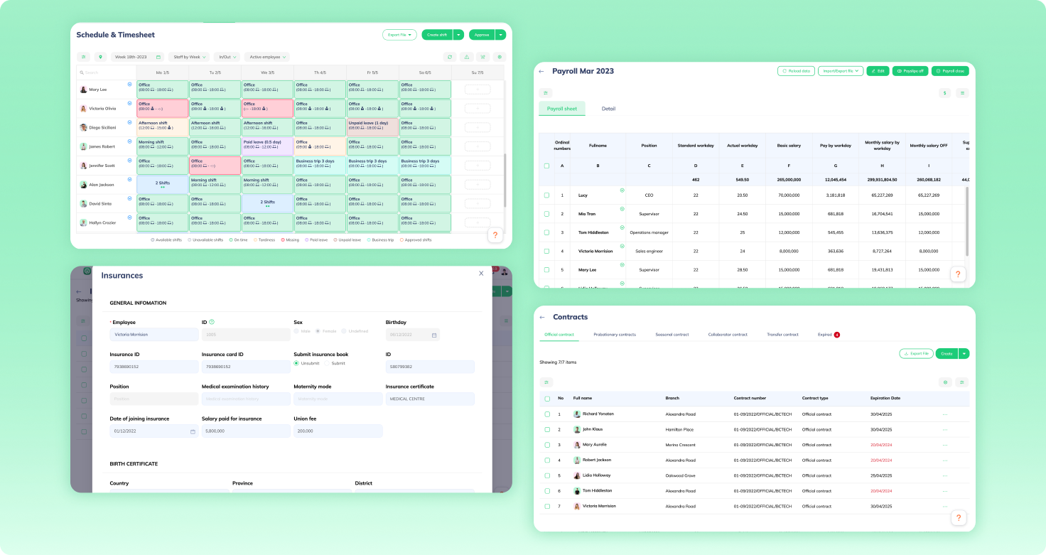 Dữ liệu nhân viên được số hóa và theo dõi trên hệ thống giúp quản lý nhân viên hiệu quả hơn, giảm thiểu công việc giấy tờ và các công việc lặp đi lặp lại tốn thời gian. |