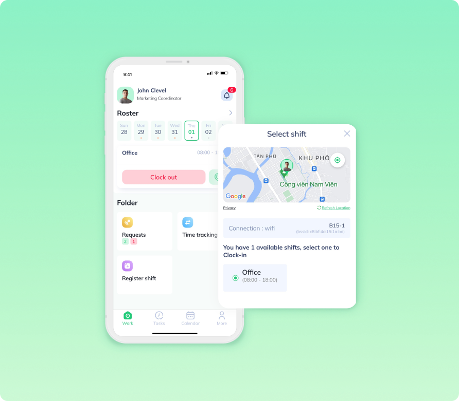 Chỉ cần điện thoại thông minh, mọi nhân viên có thể chấm công trên thiết bị của họ. Việc chấm công trở nên đơn giản hơn với phương pháp định vị vị trí GPS hay kết nối hệ thống Wifi của cửa hàng. |