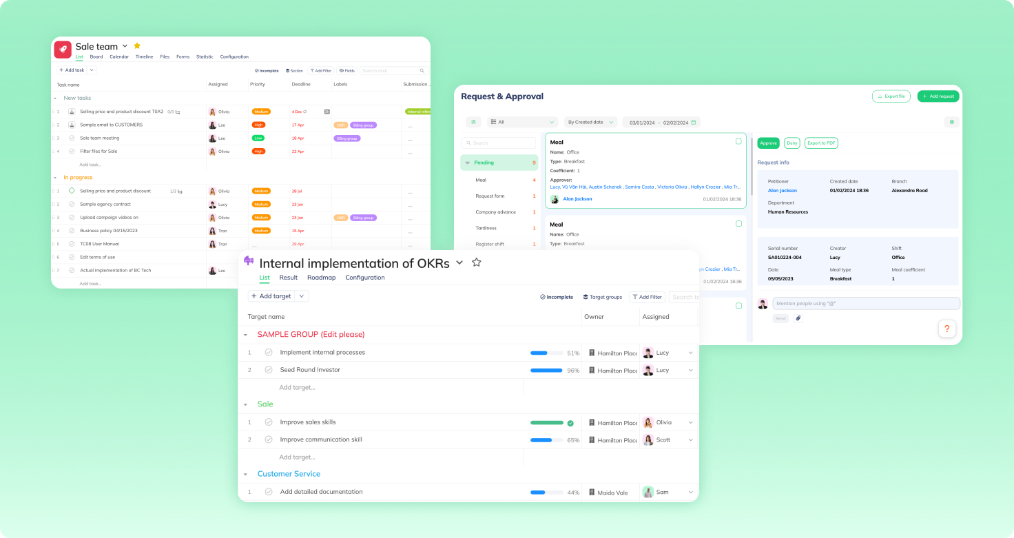 Tanca là một công cụ không thể thiếu để quản lý công việc, dự án và phòng ban. Các đánh giá KPI và OKR có thể đẩy nhanh các mục tiêu kinh doanh của bạn và vượt xa đối thủ cạnh tranh.