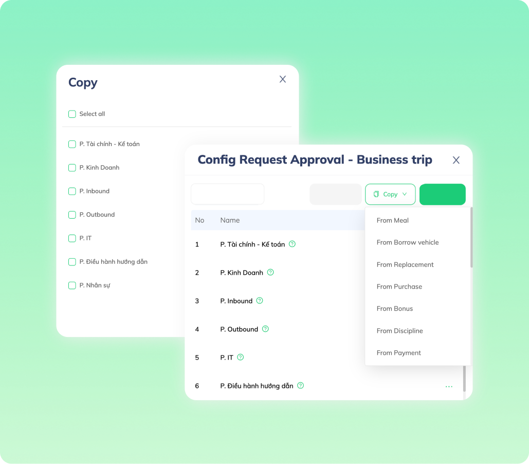 Dễ dàng sao chép cấu hình phê duyệt cho các loại đơn khác nhau.