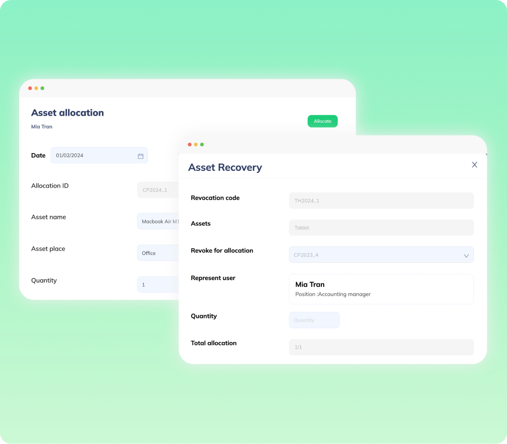 Quản lý việc phân bổ hoặc thu hồi tài sản từ nhân viên.