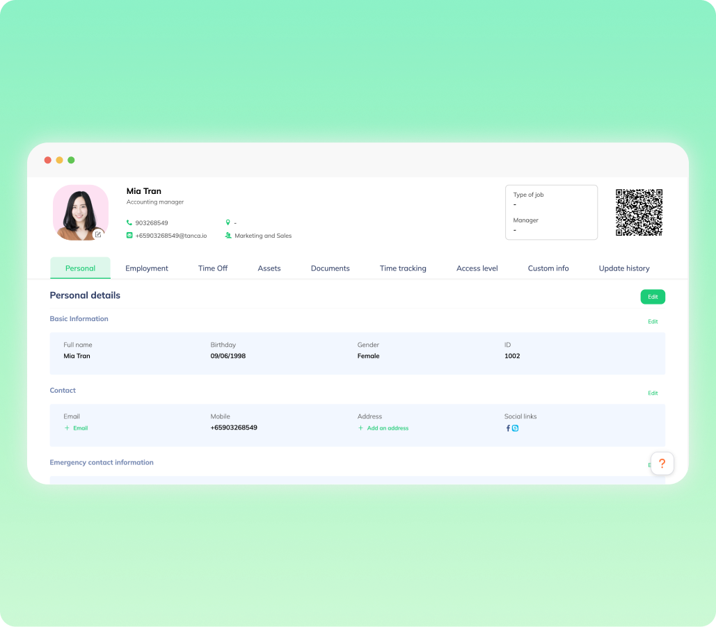 Tất cả dữ liệu của bạn ở một nơi trong hệ thống nhân sự của công ty.