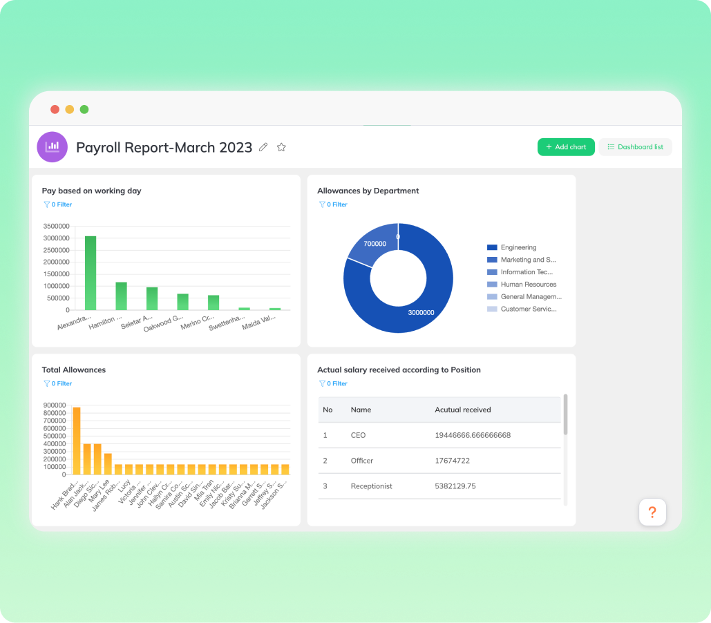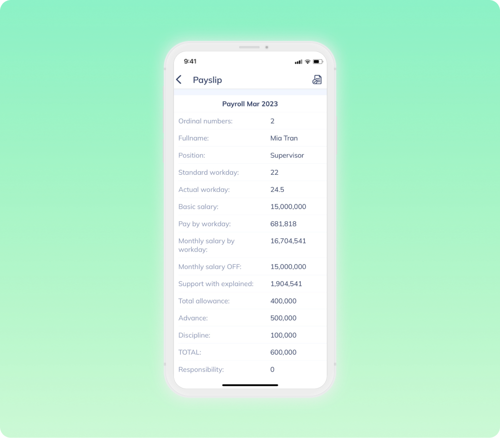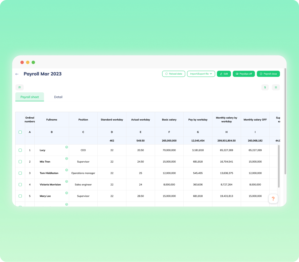 Tạo, tải xuống và xem các báo cáo bảng lương chi tiết.