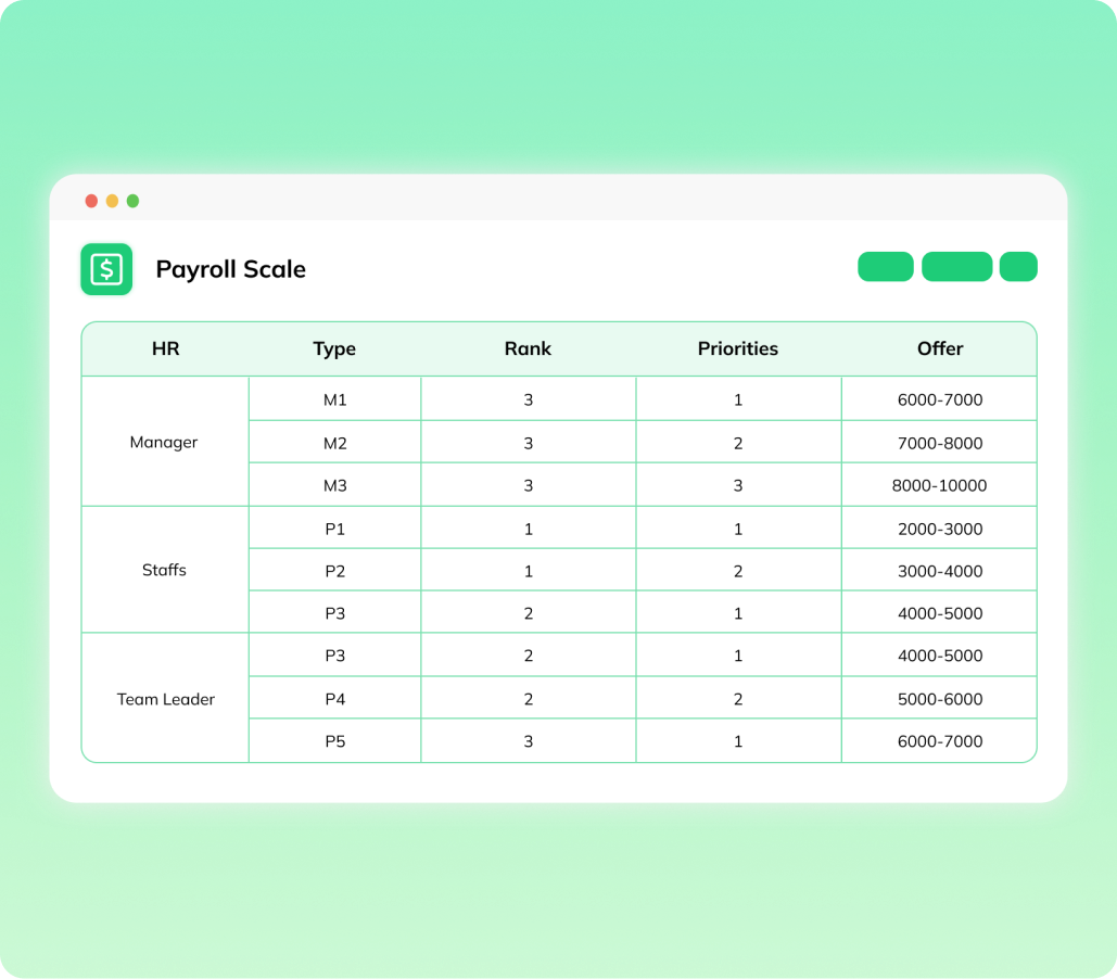 Thiết lập các mẫu lương chuẩn hóa cho các vai trò và phòng ban khác nhau.