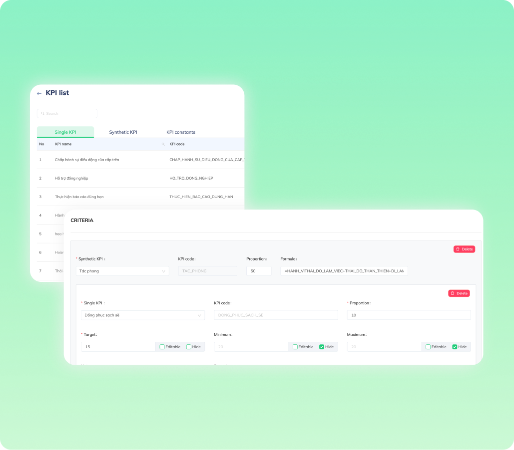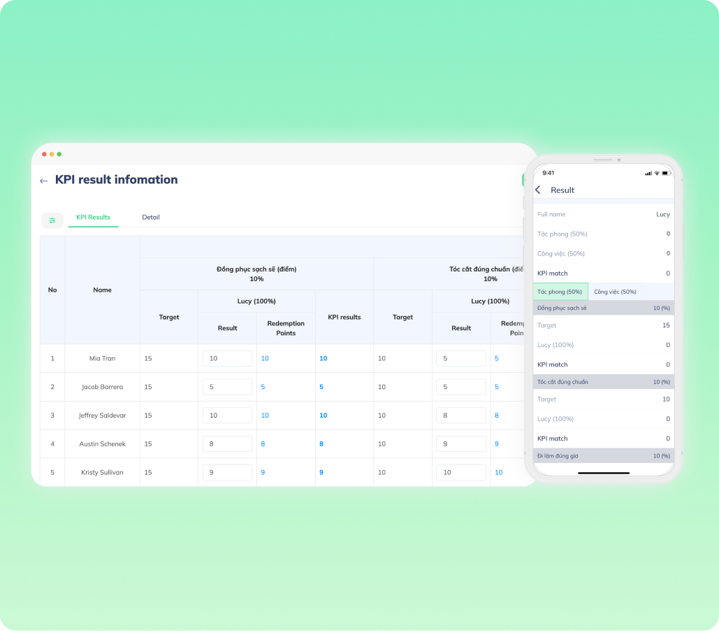 Tanca cung cấp hệ thống tiêu chí để đánh giá các chỉ số hiệu suất chính và sản lượng của nhân viên.