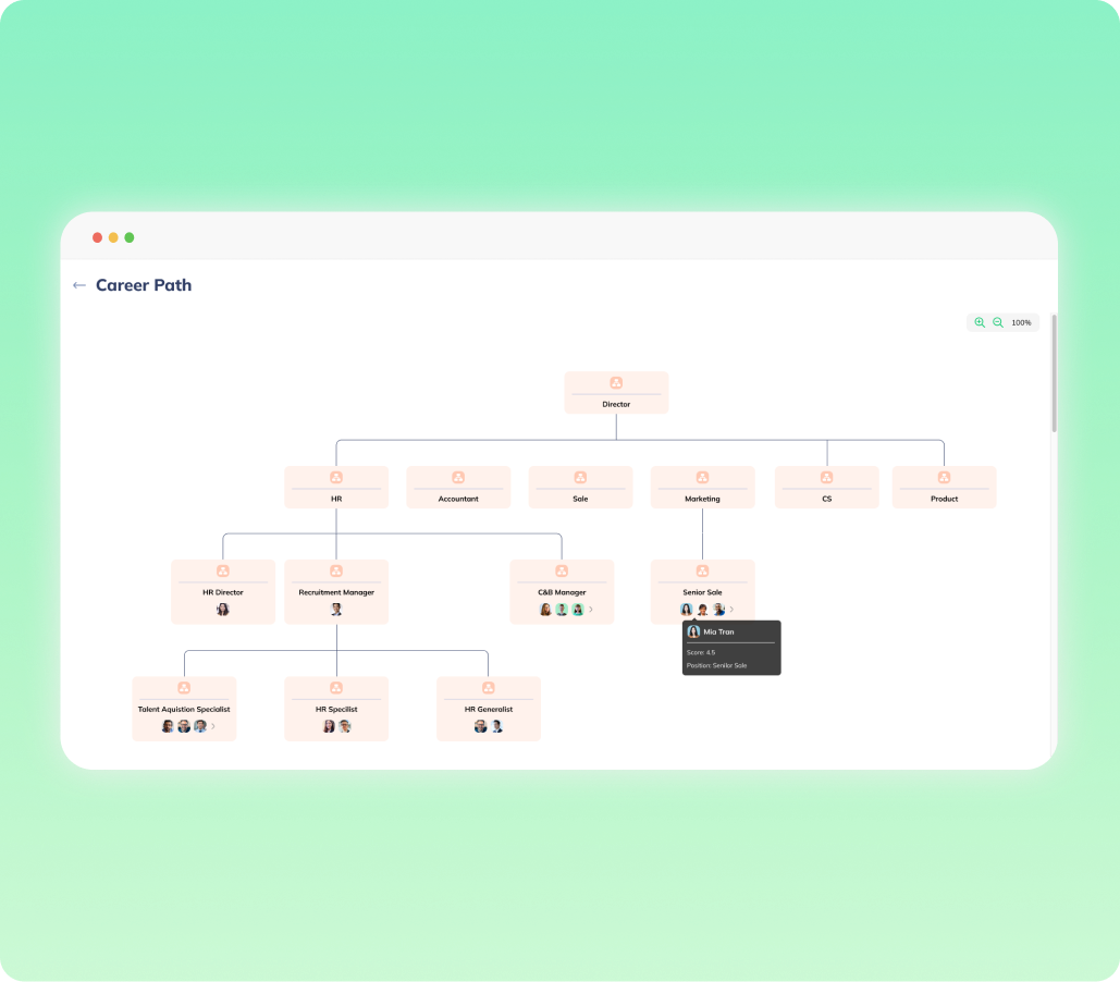 Theo dõi và phát triển nhân tài trong toàn bộ tổ chức. Tạo môi trường nơi mọi nhân viên đều có cơ hội phát triển và thăng tiến.