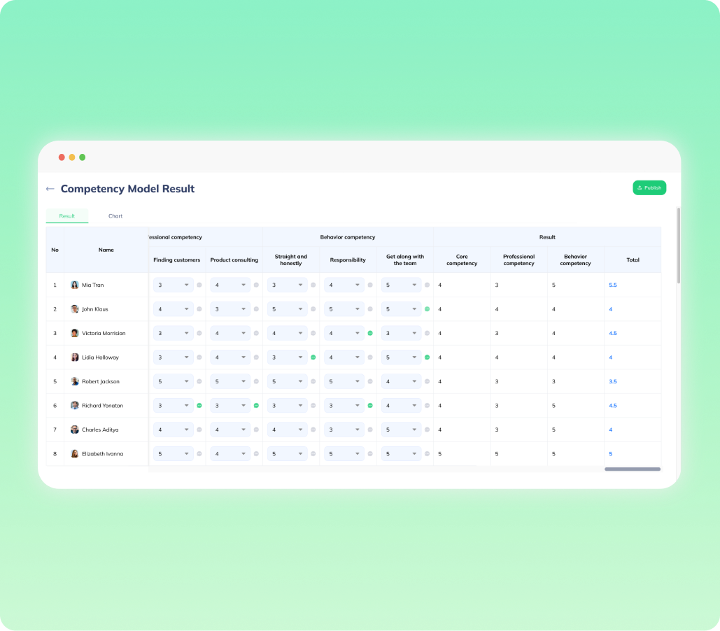 Xác định và đánh giá kỹ năng, kiến thức và khả năng của nhân viên một cách khách quan và hiệu quả. Tạo bức tranh toàn cảnh về tài năng trong tổ chức của bạn.