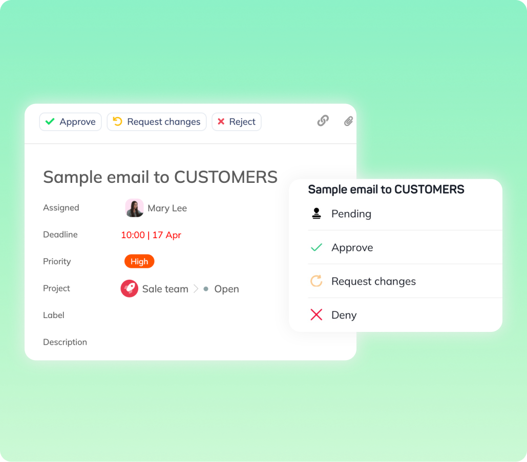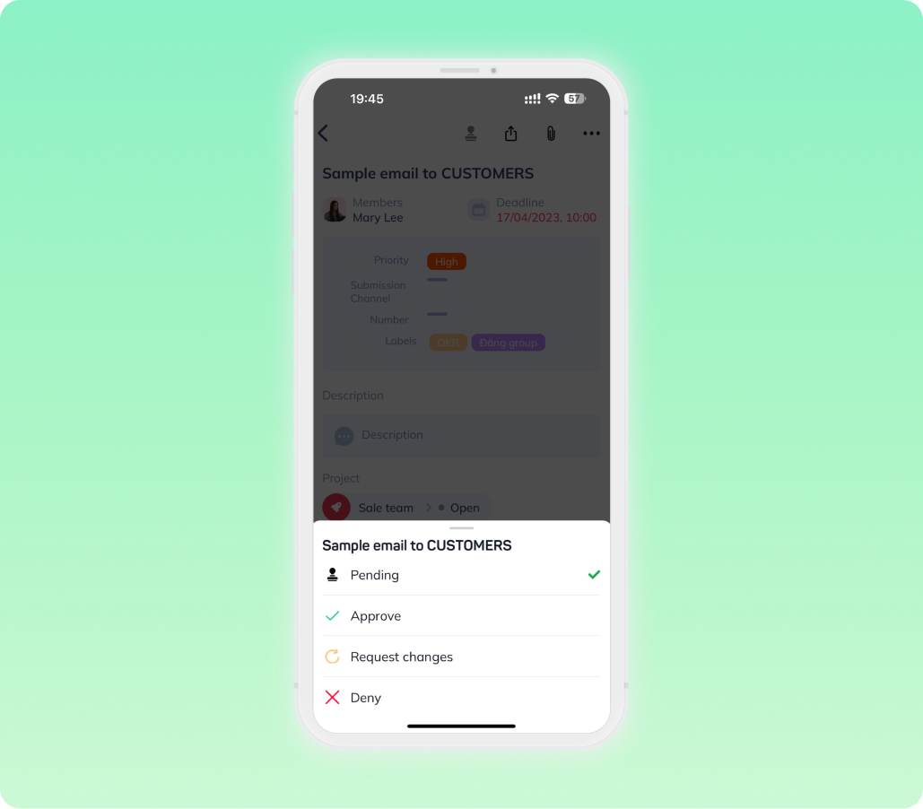 Theo dõi trạng thái của các công việc được yêu cầu như đã phê duyệt, cần chỉnh sửa hoặc bị từ chối.