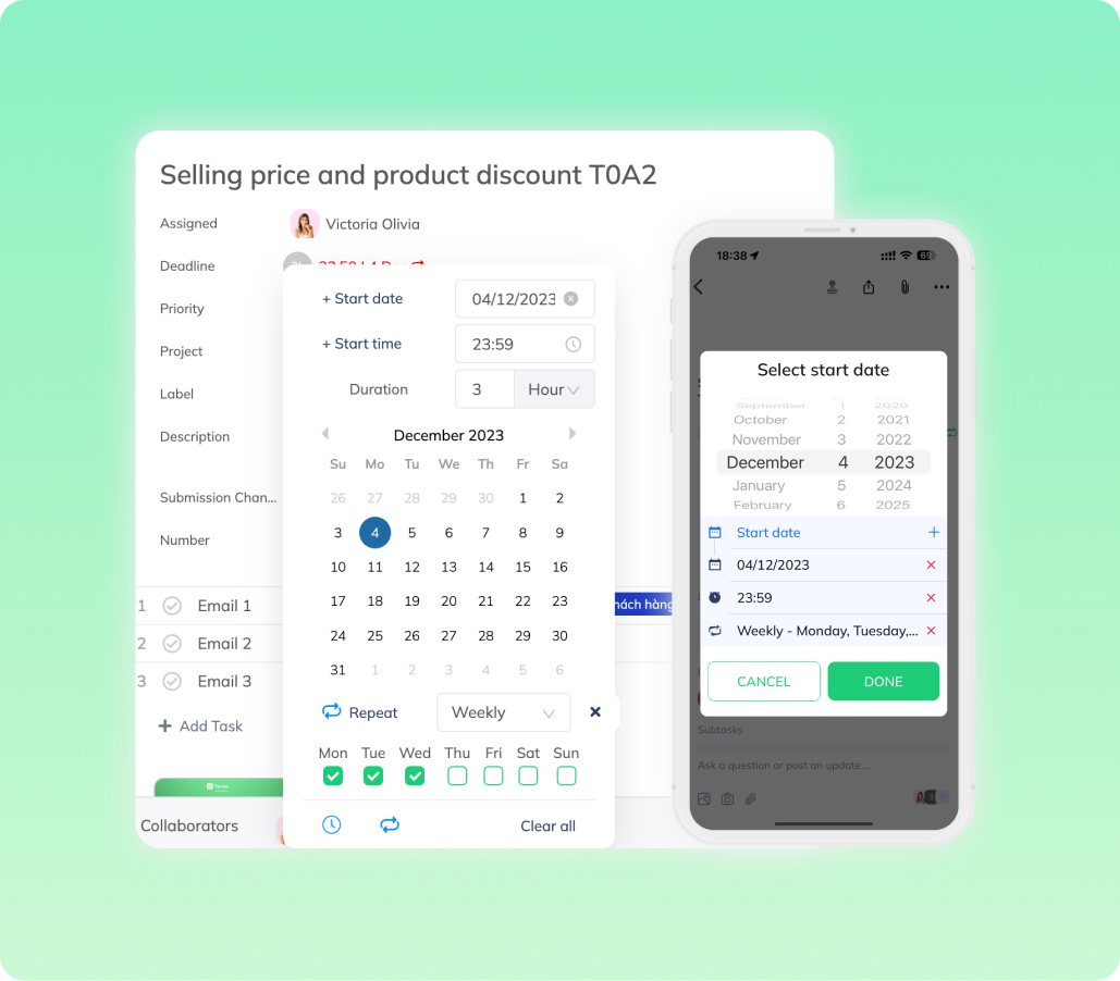 Dễ dàng tạo lịch làm việc định kỳ.