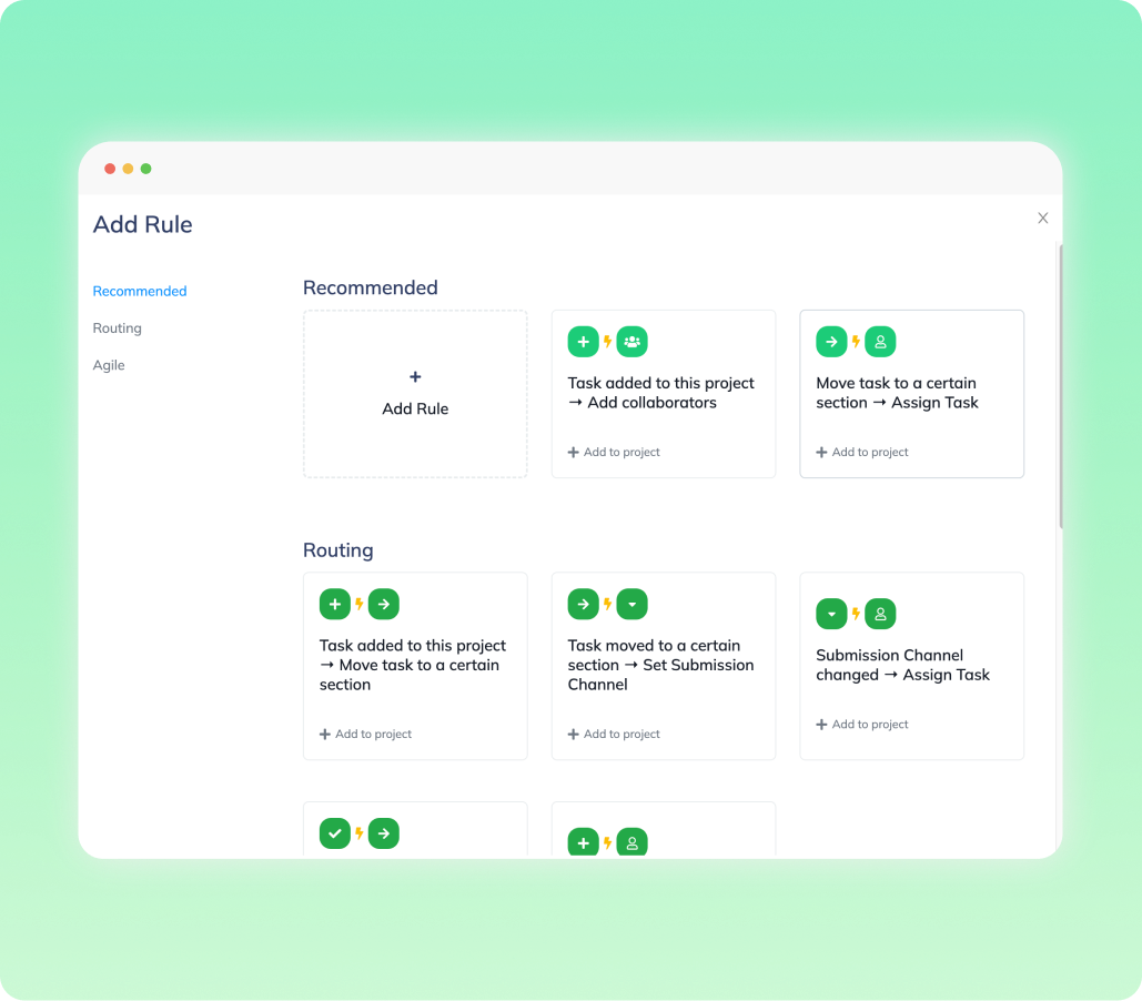 Bạn có thể tạo các phản hồi tự động trong các Luồng Sáng Tạo Tự Động của Tanca. Ví dụ, bạn có thể tạo một hệ thống tự động giao nhiệm vụ cho người thực hiện, đánh giá, và đóng hạn chót. Các cài đặt tự động hóa sẽ giúp giảm tải công việc và tối đa hóa các quy trình một bước.