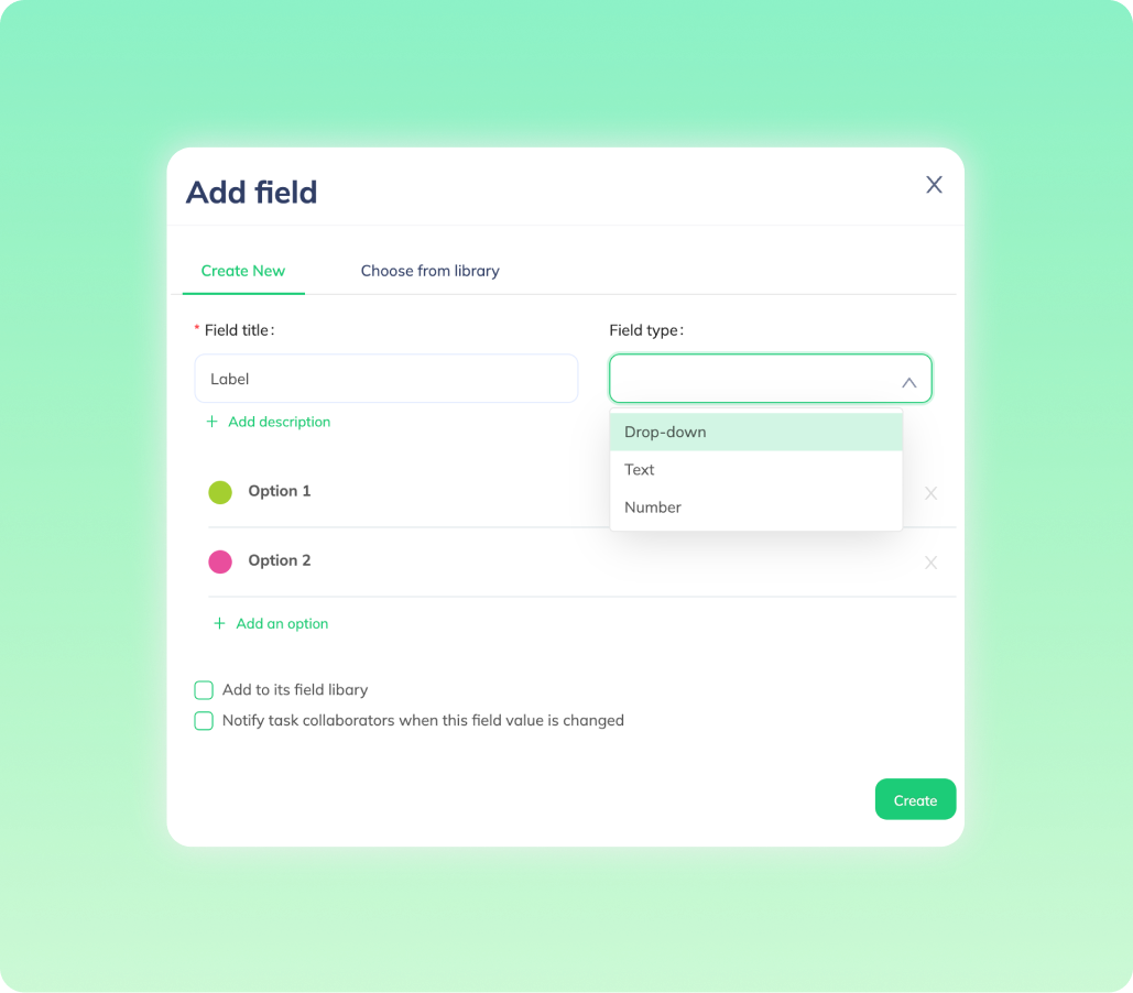 Dễ dàng tạo nhiều loại trường trong một công việc để tăng tính linh hoạt.